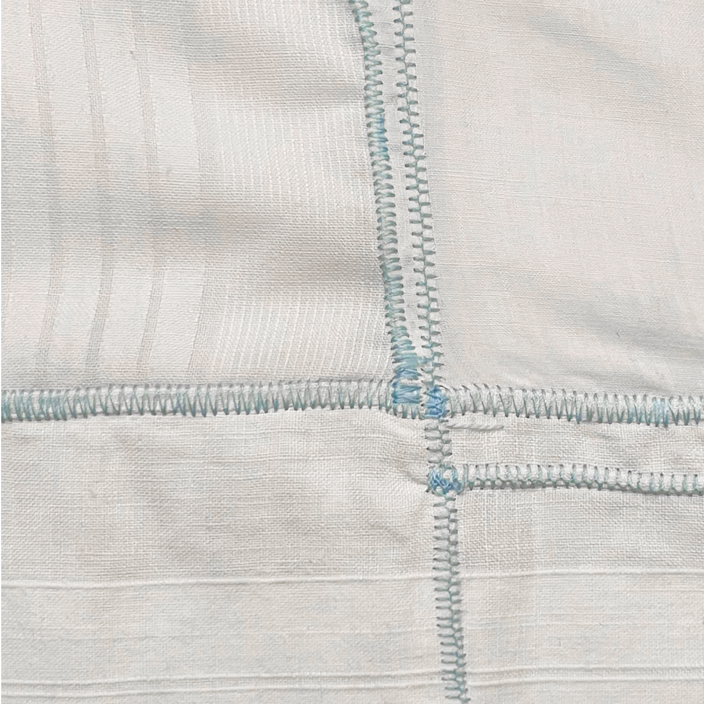 .bleu ciel qui est la couleur du fil des coutures, parce que le ciel nous dépasse, il est plus grand que nous, infini. L’idée aussi qu’on ne sait pas tout.